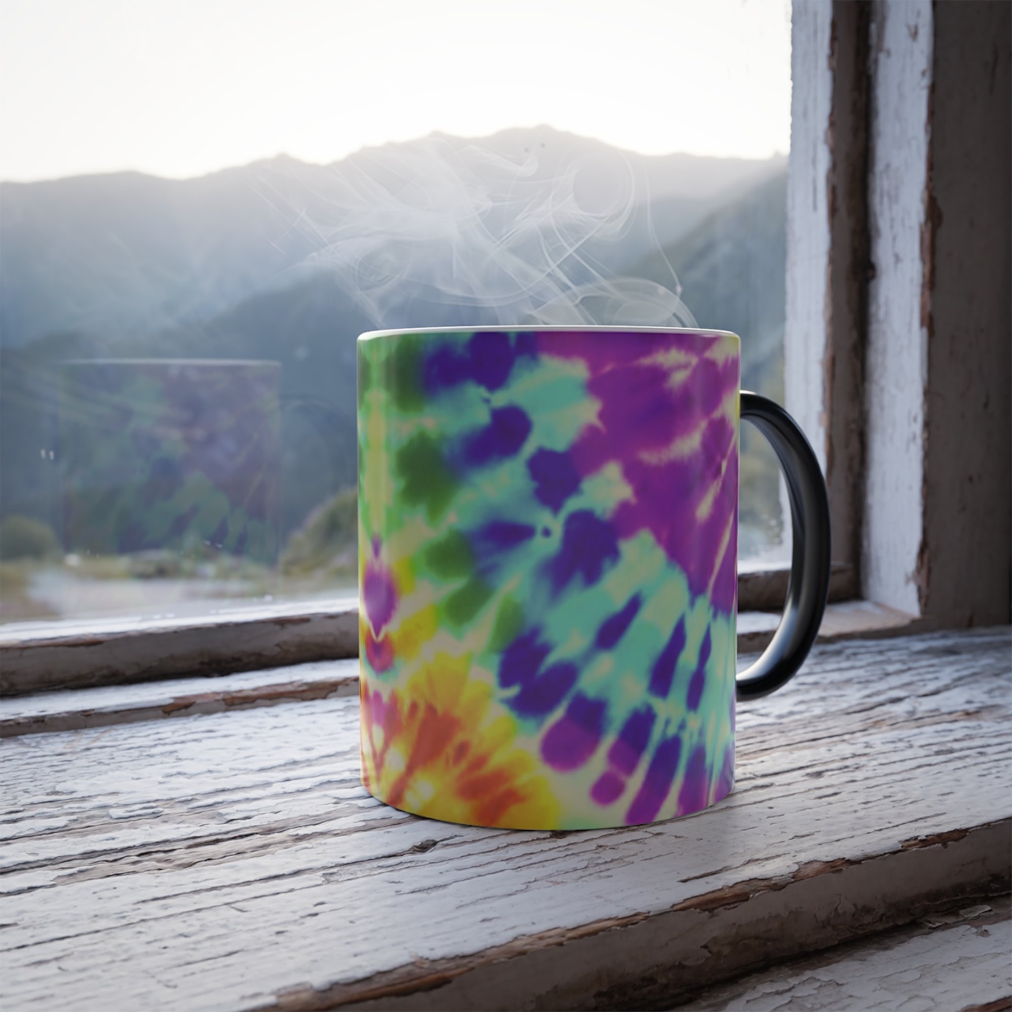 These mugs are super popular gifts for friends and loved ones. This rainbow tie dye ceramic coffee mug changes color and will be the gift that keeps giving. The heat-reactive surface reveals once the mug gets warm. The ceramic cup will go back to its original black outside and white inside when it cools down. The C-shaped handle helps keep a sturdy grip. It comes in one size – 11oz (0.33l) – plenty for that big morning cup of coffee.