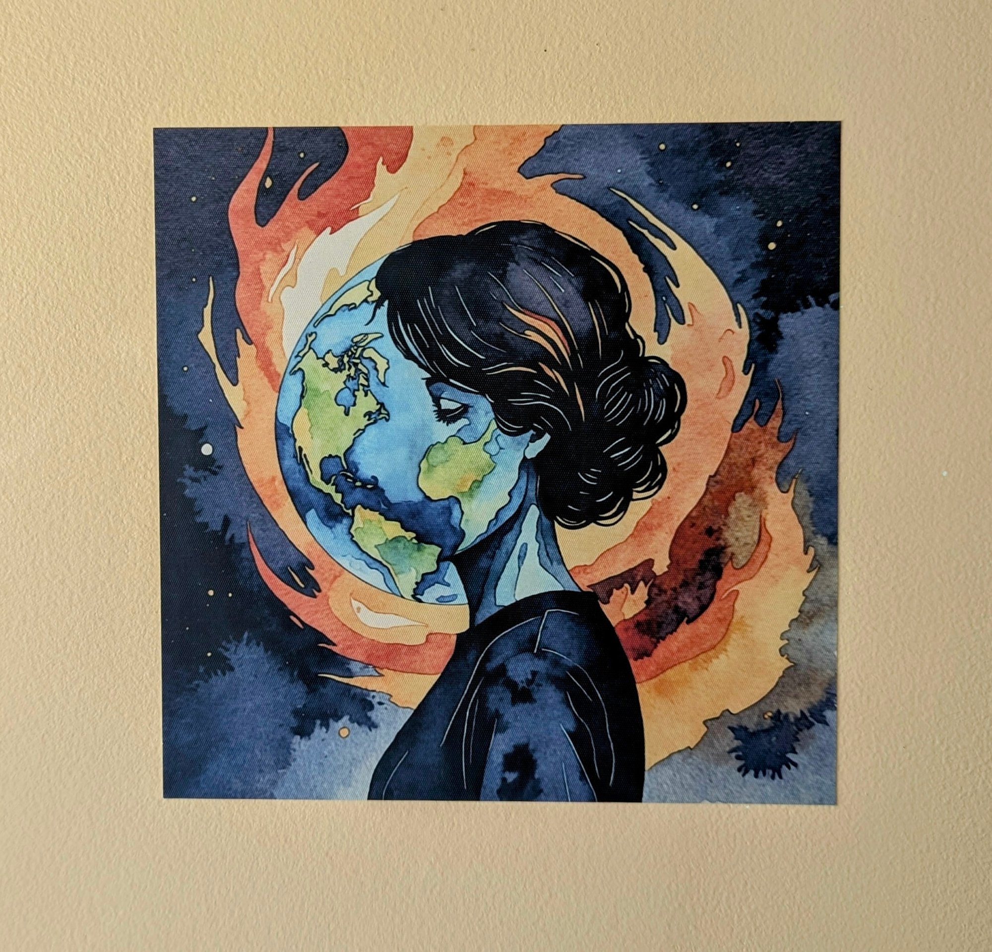 World is on Fire Watercolor Peel and Stick Art Print - 8 x 8 in.